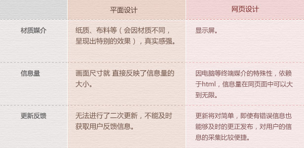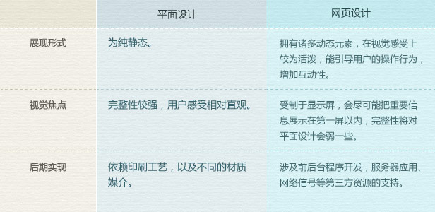 平面設(shè)計(jì)屬于比較傳統(tǒng)的信息媒介設(shè)計(jì),一般會通過張貼、銷售、郵寄派送等形式進(jìn)行傳播,這樣傳播的方式范圍小且成本較高,相對而言在這方面網(wǎng)頁設(shè)計(jì)的信息傳播能力卻非常的強(qiáng),但依賴于第三方媒介的支持,平面設(shè)計(jì)卻擁有更為廣泛的受眾人群,不同的年齡層對于紙張或書本的信息接受能力總是強(qiáng)于網(wǎng)絡(luò)媒體的,畢竟網(wǎng)絡(luò)信息獲取的將會存在一個(gè)學(xué)習(xí)成本,在今后網(wǎng)絡(luò)信息的不斷普及以及終端媒介用戶體驗(yàn)的不斷提升,在受眾人群方面在我看來差距會越來越小。
