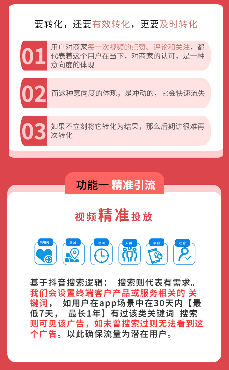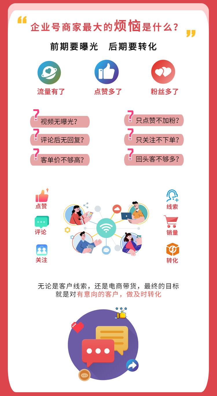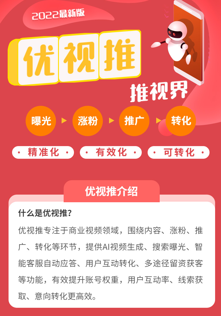 短視頻平臺智能營銷獲客系統(tǒng)專注于商業(yè)視頻領(lǐng)域,國繞內(nèi)容、漲粉、推廣、轉(zhuǎn)化等環(huán)節(jié),提供Al視頻生成、搜索曝光、智能客服自動應(yīng)答、用戶互動轉(zhuǎn)化、多途徑留資獲客等功能,有效提升賬號權(quán)重,用戶互動率、線索獲取、意向轉(zhuǎn)化更高效。